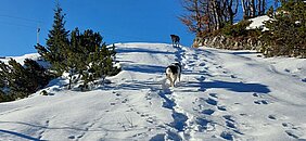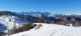 Das Gebiet Bled/Bohinj in Slowenien gefiel mir so gut, dass ich nach Abreise meiner Cousine und ihrem Mann noch ein paar Tage in der Region verbrachte. Wanderungen zu Wasserfällen, dem Seeufer entlang und durch Schluchten hoch füllten 2 Tage. Einen Tag gönnte ich mir und den Hunden einen letzten richtigen Schneetag. Mit der Gondel fuhren wir hoch ins Skigebiet Vogel, welches aber noch nicht eröffnet hatte. Bei herrlicher Sonne und grandiosem Panorama auf die Julischen Alpen genossen wir einen weissen Tag. Was hatten die Ladies Spass! Auch ohne Schneeschuhe liessen sich die Berghänge abseits der präparierten Pisten gut bewandern, denn so gross war die Schneemenge noch nicht.
