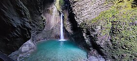 Dann kam doch langsam die Lust auf Süden und Meer. Aber immer gemütlich, ich hab ja Zeit! Auf dem Weg südwärts besuchte ich noch Kobarid und das dortige Kriegsmahnmal. Über 7000 Soldaten aus WW1 fanden dort ihre letzte Ruhe, die meisten Italiener. Irgendwie bedrückend, aber auch sehr eindrücklich und zum Nachdenken anregend. Aktuell stellt sich wieder die Frage, ob die Menschheit aus den 2 Weltkriegen wirklich nichts gelernt hat… Und als letztes am Weg liegende Wanderung besuchten wir dort noch den Wasserfall Kozjak, einer mehr in der Liste der Wasserfälle, aber bestimmt einer in den Top3. Wie aus dem Nichts kommend stürzt das Wasser senkrecht runter in ein Felsengewölbe mit einem kleinen See.