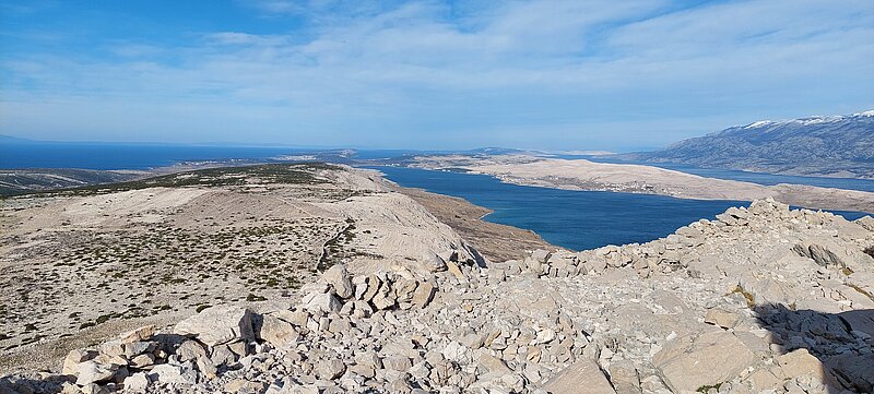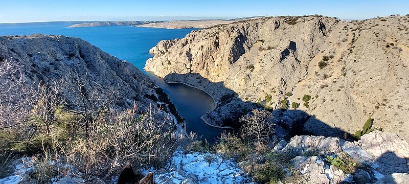 Nun aber zur Zusammenfassung der letzten 5 Wochen! Die letzten News endeten auf der Insel Krk, wo ich paar Tage blieb. Hat ihre schönen Seiten, würde ich aber ein nächstes Mal auslassen. Nach einer sehr stürmischen Fähr-Überfahrt erkundeten wir dann die Insel Rab. Für die ersten paar Nächte hatte ich da eine feste Unterkunft und wir unternahmen Tagesausflüge. 2 wunderschöne - für Inua aber grenzwertige - Küstenwanderungen waren dabei, von Bucht zu Bucht, hoch und runter, mit Schafen, mit Strand, mit Klippen. Den höchsten Punkt der Insel erlebten wir im Schneetreiben. Aufgrund der Fährverbindungen musste ich dann erst kurz zurück aufs Festland, bevor es weiter auf die Insel Pag ging. Aber der Ausflug zum Fjord Zavratnica mit Wanderung von Meereshöhe wieder bis zum Schnee hoch, war ganz bestimmt eines der vielen Highlights der Reise mit sagenhaften Ausblicken, tiefblauem Meer, krassen Klippen und einfach ganz vielen Wow-Momenten. Dann die Insel Pag, vor der ich gewarnt wurde: “ausser Salzfelder und Felsen gibts da nichts”. Stimmt gar nicht! Wunderbare Wanderwege, kleine unberührte Buchten, uralte Olivenhaine, das Kap Lun am Nordende der Insel mit 300-Grad-Ausblick aufs Meer, den höchsten Punkt der Insel (349MüM) mit noch genialerem Ausblick und die genauso beeindruckenden, extrem kargen Fels-Landschaften, bezeichnenderweise “Mond” und “Mars” genannt.