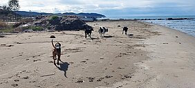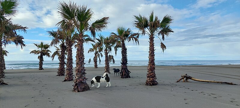 Dann kam Albanien - ähnliche Eindrücke wie aus Montenegro. Die Berge ein Traum, die Strassen dort meist ok, sogar etwas breiter als in Montenegro, die Vermüllung nicht so arg und auch das Tierleid in den Bergen kaum zu sehen. Im Gegenteil: da ziehen viele Hirten mit ihren Schaf- und Ziegenherden rum, begleitet von gut aussehenden Hütehunden, die Esel sehen kräftig aus, etc. Aber je näher ich zur Küste kam, desto schlimmer wurde es. Müll wirklich überall, Strassen meist eine Katastrophe, auch hier wieder traurigste Mülldeponie-Hunde-Situationen, verletzte Hunde entlang der Strassen, Überfahrene, die keiner wegräumt… eigentlich hätte ich in den Bergen bleiben sollen! Trotzdem bin ich an die Küste, weil halt Sandstrand & Meer schon auch was Tolles ist! Tja, hätte ich nicht machen müssen! Es kam, wie es kommen musste… am Strand, an dem ich 2 Tage war, “wohnten” ein schwarzer Labi-Mischling, ich nannte ihn Musto, und ein Niederlaufhund-Mischling, etwas kleiner, ich nannte in Lauri. Und der "Kleine Mann" Lauri ist mir derart ans Herz gewachsen mit seinem vorsichtigen, ruhigen, beobachtenden, nicht aufdringlichen Charakter, wie er wie ein Schatten überall mitlief, wie er fast ungläubig schaute, als er seinen ersten gefüllten Napf bekam, wie er sich einfach ins Rudel einfügte und von den Ladies akzeptiert wurde. Ich hätte ihn tatsächlich mitgenommen, wenn es eine Möglichkeit gegeben hätte. Aber eben: Albanien > EU ist in Theorie sehr aufwändig und bis ich alle Papiere und Tests, Impfungen, Chip gehabt hätte, hätte ich gemäss Tierarzt mit bis 2 Monate Wartezeit rechnen müssen. So konnte ich die beiden nur entwurmen, gegen Parasiten behandeln und natürlich die 2 Tage füttern. Dass beide Hunde dann gestern Nachmittag, als ich zum Fährhafen musste, dem Auto noch fast 1 km hinterher gerannt sind, das hat mir das Herz zerrissen! Weil ich mir sagte, “dass haben sie ja vielleicht schon mal erlebt” und mir wie ein Verräter vorkam. Und als dann heute morgen in Bari niemand irgendwelche Papiere sehen wollte, hab ich geflucht und wieder geheult!