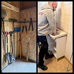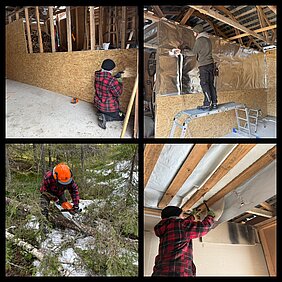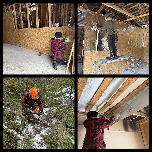 Anne und Julian sind fleissig und super effizient im RedHouse zugange. Die ersten Tage haben sie Toilette und Dusche/Sauna verschönert, diverse Löcher des Vor-Bewohners in allen Wänden verspachtelt und alles neu gestrichen, Küche eingerichtet und den grossen Ofen fleissig eingeheizt. Auch die vielen geplanten Arbeiten in der Scheune sind schon alle fast fertig. Der Innenraum wurde sauber in 3 Abteile geteilt, der Dachboden als weiterer Stauraum ausgebaut, die Wände für ein Abteil isoliert und neue Holzverschalung eingezogen. Sobald es das Tauwetter zugelassen hat, begannen sie mit der Schneise durch den Wald runter zum Wasser. Hier wird später im Sommer ein Bolensteg gebaut, damit alles Material für Kanutouren sauber runter getragen werden kann und auch die Hunde beim Freilauf mit Vollgas zum Wasser stürmen können.