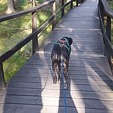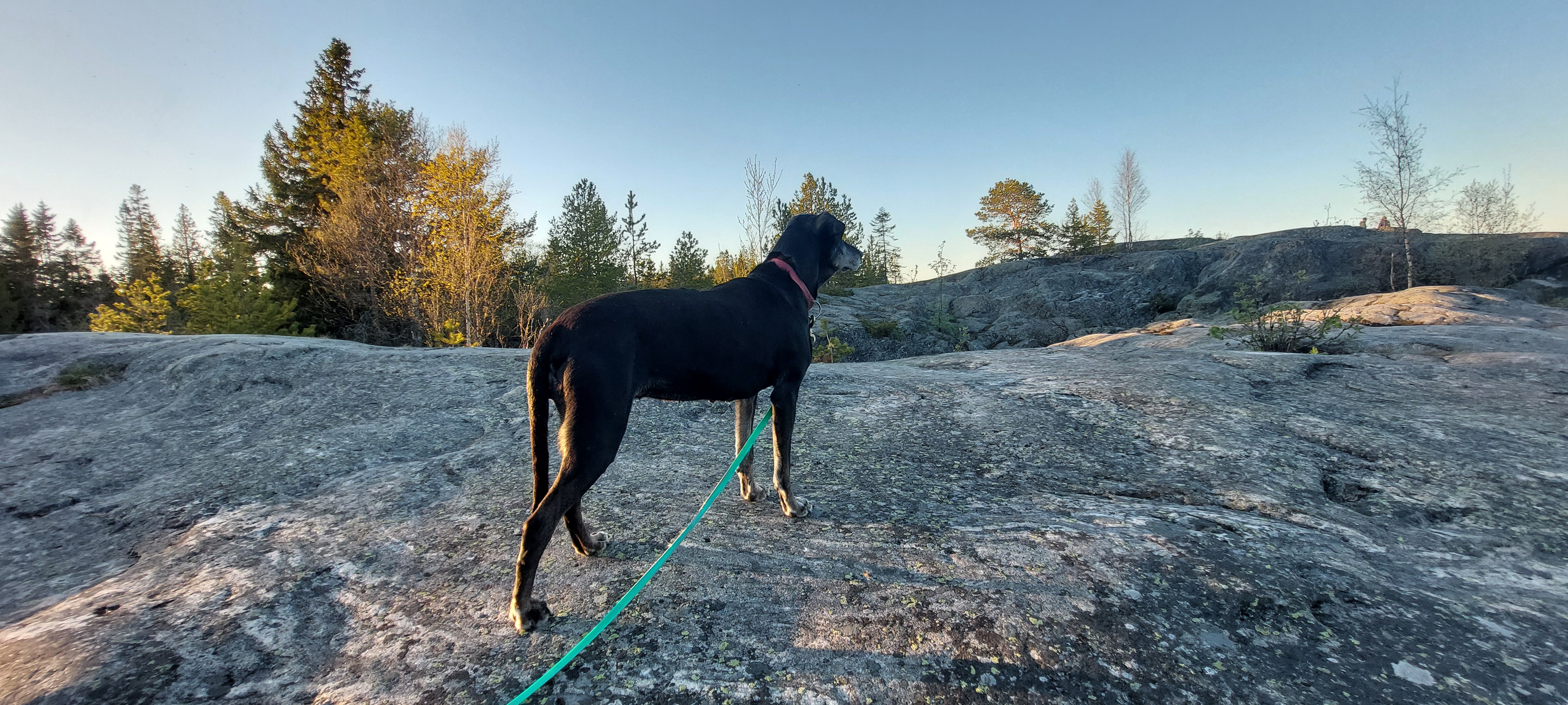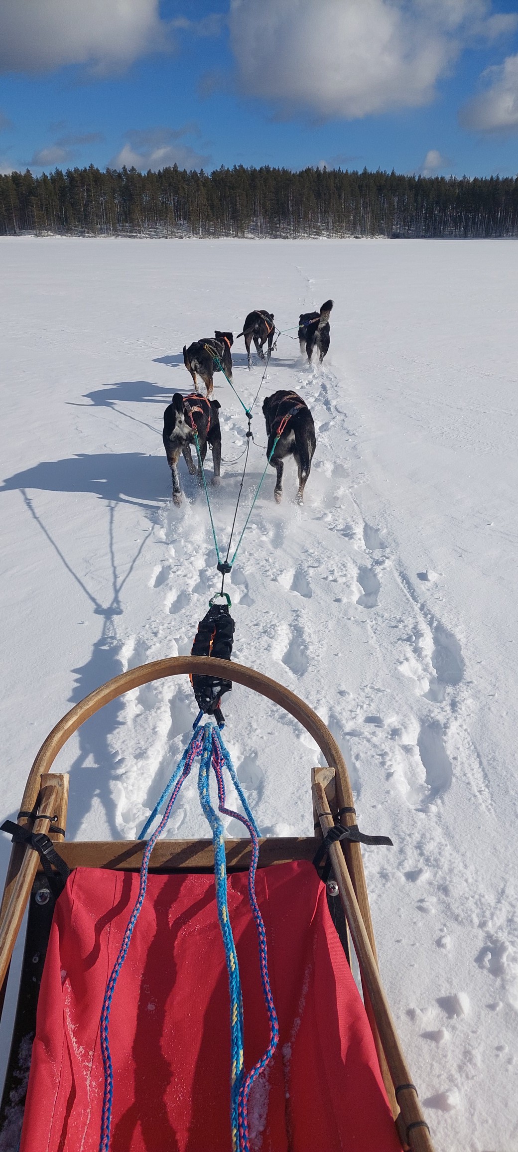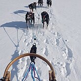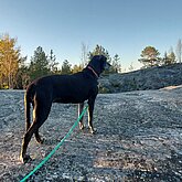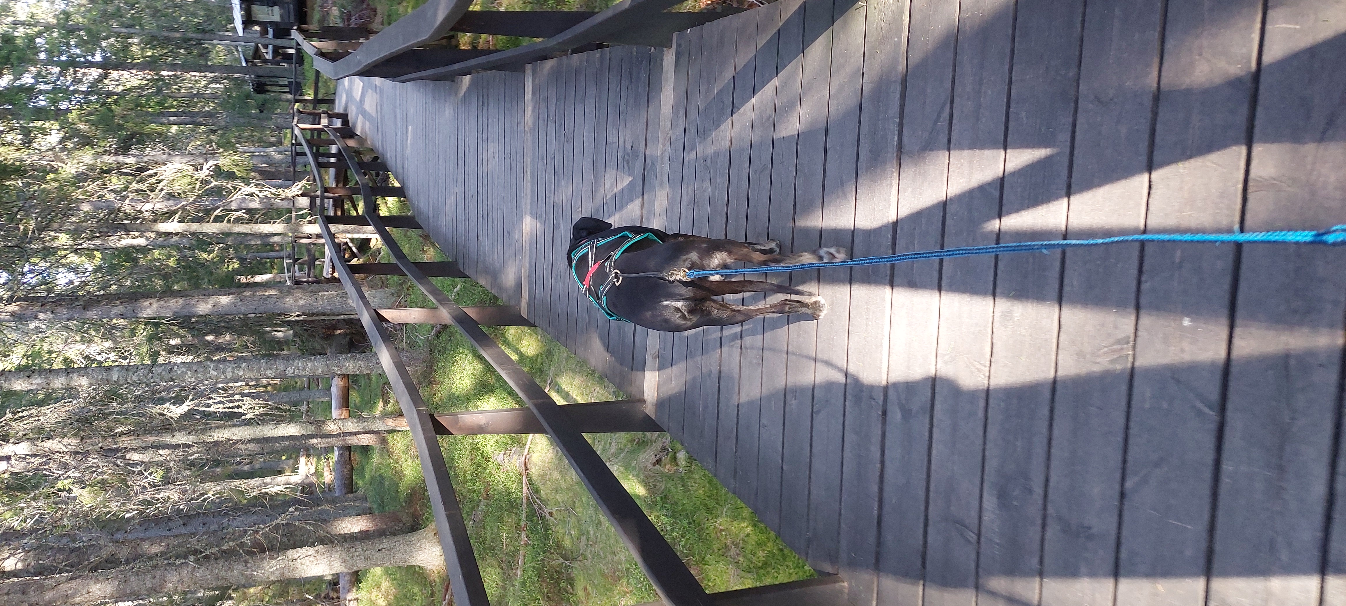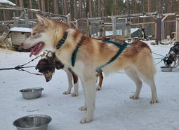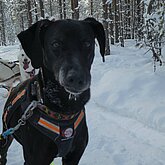 Im Frühling 25 liess ich sie sterilisieren und seither lebt sie als Haushund bei mir. Im kleinen “Rudel” von Inua und ihr hat sie ganz klar die 2. Position übernommen und auch so akzeptiert. Obwohl sie als Leithund am Schlitten aber so selbstsicher war, zeigt sie als Haushund in vielen Situationen noch grosse Unsicherheit. Unbekannte Geräusche, unbekannte Personen, neue Umgebung, die erste Fährpassage mir ihr… sie muss noch viel lernen, um ihr Rentnerleben so richtig geniessen zu können. Aber wir gehen es langsam, Schritt für Schritt an und ich freue mich über jede Verbesserung. Im Frühsommer waren wir bereits in Schweden unterwegs, später im Sommer noch 2 Wochen in Finnland. Beim Wandern zeigt sie einen recht starken Jagdtrieb, weshalb sie - je nach Region - noch das Zuggeschirr angezogen bekommt und mich dann am Bauchgurt hinterherzieht.
