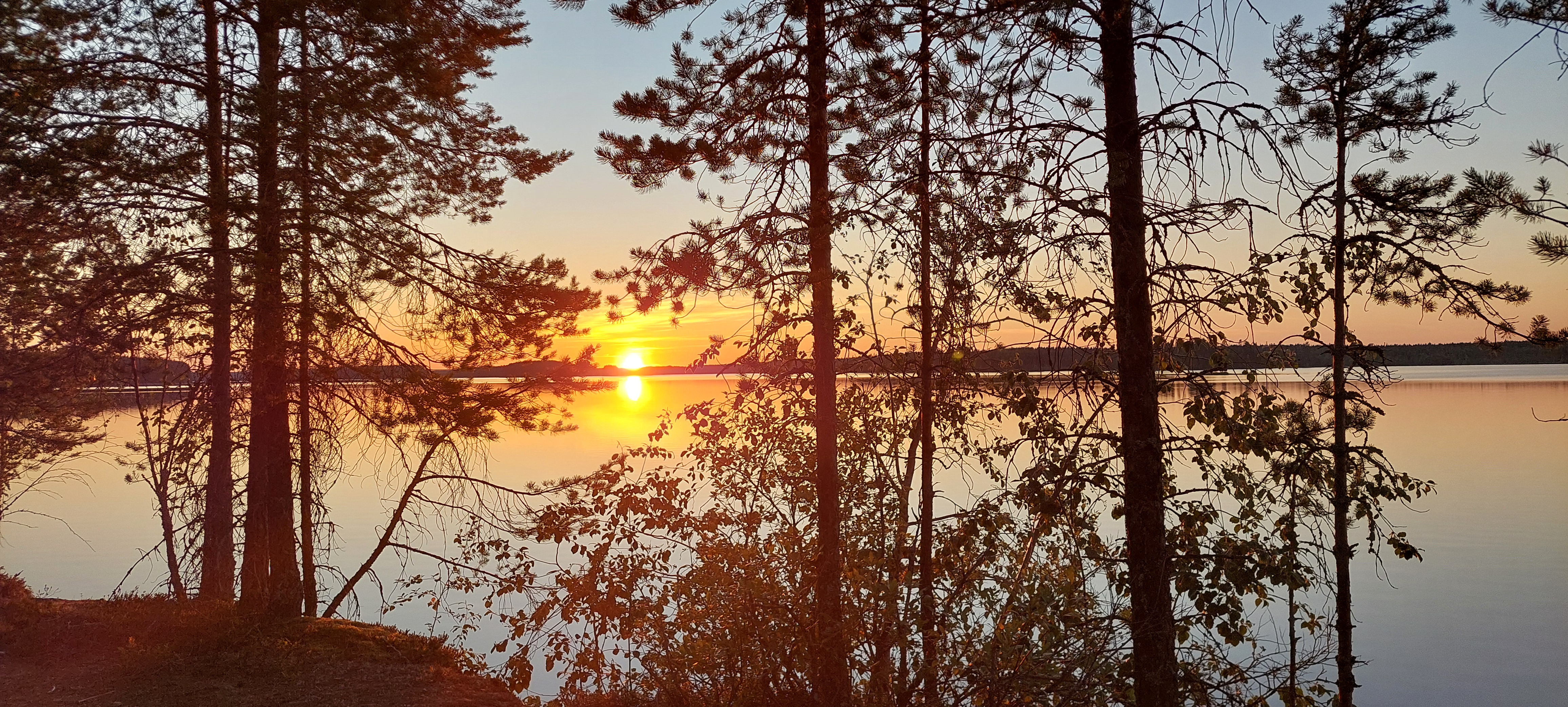 Nach einem ca. 40minütigen Transfer mit Anhänger wassern wir unsere Boote an einem ausrangierten alten Bootshafen ein und starten unsere Tour am Nurmesjärvi. Durch sauberes Wasser, um Inseln herum und entlang vieler unverbauter Buchten mit Fels- oder Sand-Abschnitten paddeln wir den See nordwestlich entlang. Am Ende des Sees paddeln wir erst unter der neuen Brücke der Strasse 76 durch, kurz danach unter der historischen Steinbrücke Tuuliniemi durch und schon sind wir im See Ontojärvi. Ein wahres Inselparadies, nur wenige Buchten sind mit Fahrzeugen erreichbar. Wer Lust hat, die Inseln zu zählen, kann es gerne versuchen… Wir paddeln solange und soweit wie wir Lust haben, machen Pause, wann immer nötig, stellen das Zelt auf, wo es uns gefällt. Geheimtipp: der mehrere 100m lange Sandstrand von Ruokonpuro, wo wir auch ein abendliches Lagerfeuer geniessen können. Oder wie wäre es mit einem Weiterpaddeln nachts? Die Nächte sind hell und die Lichtstimmungen während der kurzen Zeit zwischen Sonnenuntergang und -aufgang wunderschön.